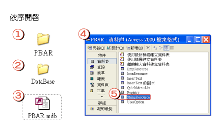 PBAR介面語系可自行建立更改,但電腦需裝設Microsoft Access,方能開啟資料庫。 |